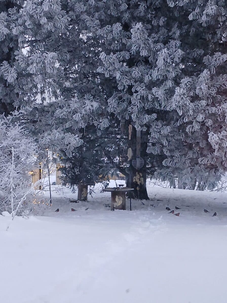 Men tre arter utmärkte sig och besökte matningen på Villavägen flitigt under dagen, Talgoxen 12 ex räknade samtidigt, Domherren 14 ex räknade samtidigt och Blåmesen 7 ex räknade samtidigt.