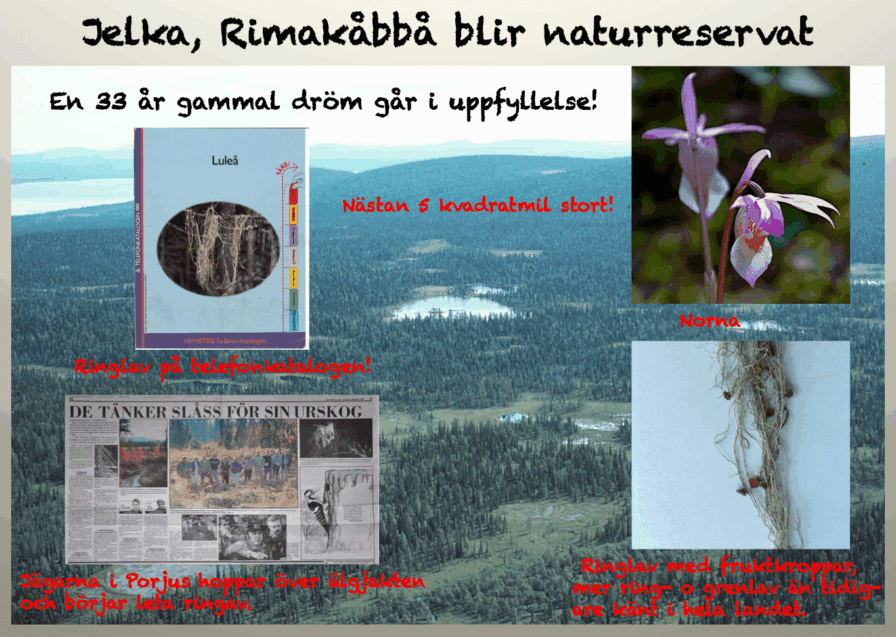 Äntligen har en 33 år gammal dröm gått i uppfyllelse nu när Jelka-Rimakåbbå blivit skyddat som naturreservat. Hösten 1986 startade vi Steget Före på Rimakåbbå och turerna kring skydd har blivit många genom åren.