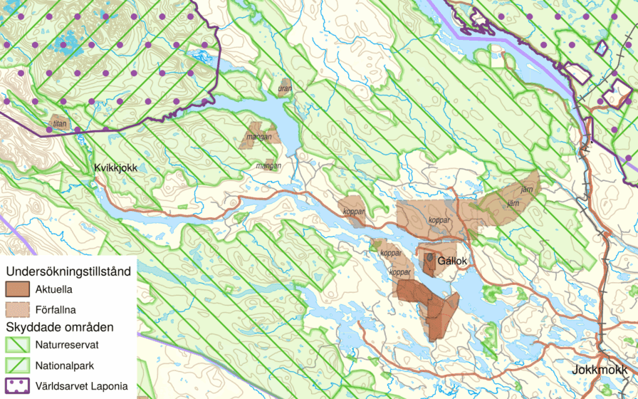 Samtidigt som bolaget säger sig respektera världsarvet så vet vi att de sedan tidigare haft långtgående planer på ytterligare gruvverksamhet både inom och i anslutning till Laponia. Bland annat har bolaget prospekterat efter uran cirka 10 km från världsarvets gränser och tagit fram en konceptstudie för en titangruva med tillhörande avfallsanläggningar inne i själva Laponia (se kartan nedan).